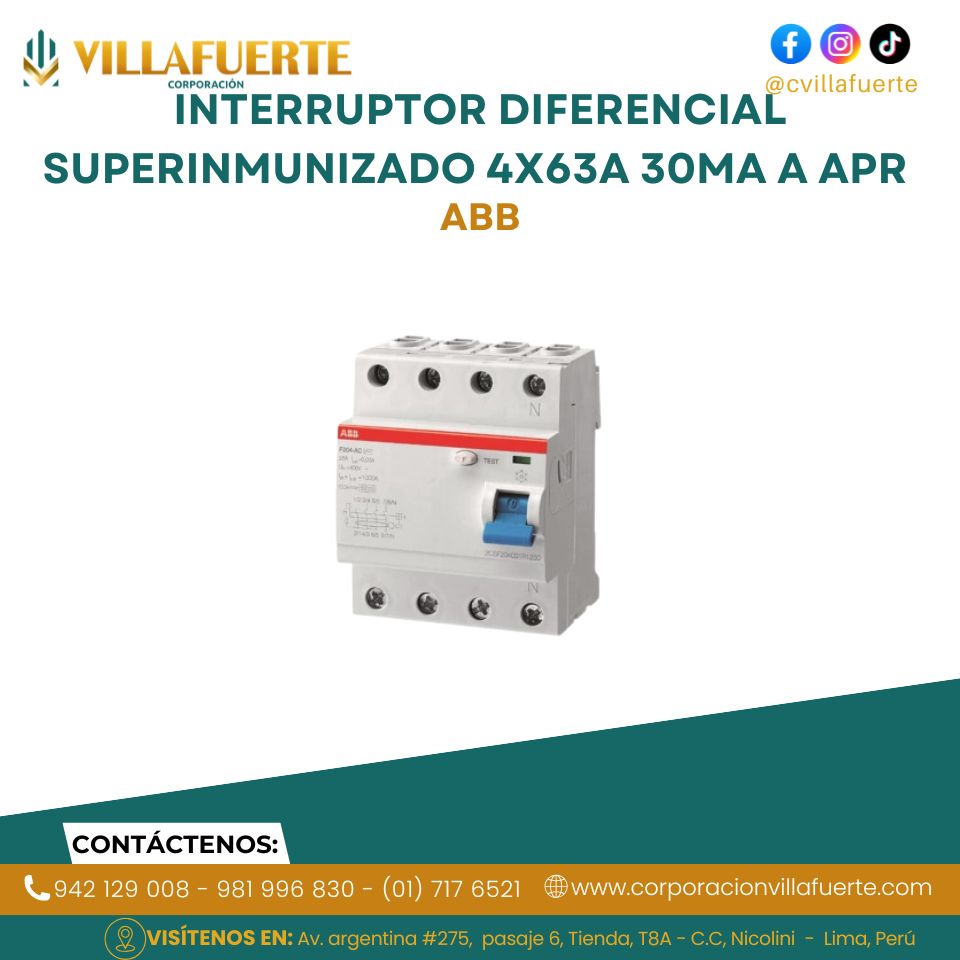 Interruptor diferencial superinmunizado 4x63A 30mA a APR ABB