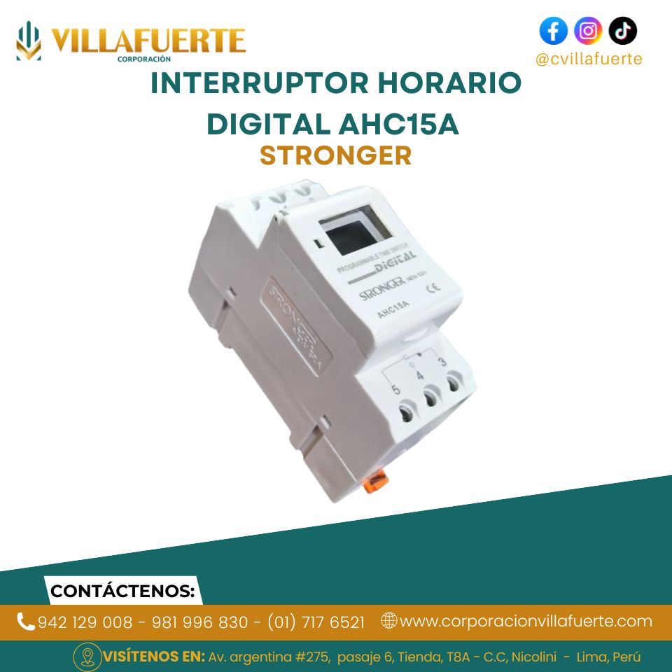 El Interruptor Horario AHC15A STRONGER NEW ERA es un dispositivo programable diseñado para automatizar el encendido y apagado de equipos eléctricos según horarios establecidos. Se monta fácilmente en riel DIN, permitiendo control eficiente de iluminación, bombas, motores y otros dispositivos eléctricos. Su diseño confiable y compacto garantiza durabilidad y funcionamiento preciso, ideal para aplicaciones residenciales, comerciales e industriales que requieren ahorro energético y control automatizado de sistemas eléctricos.