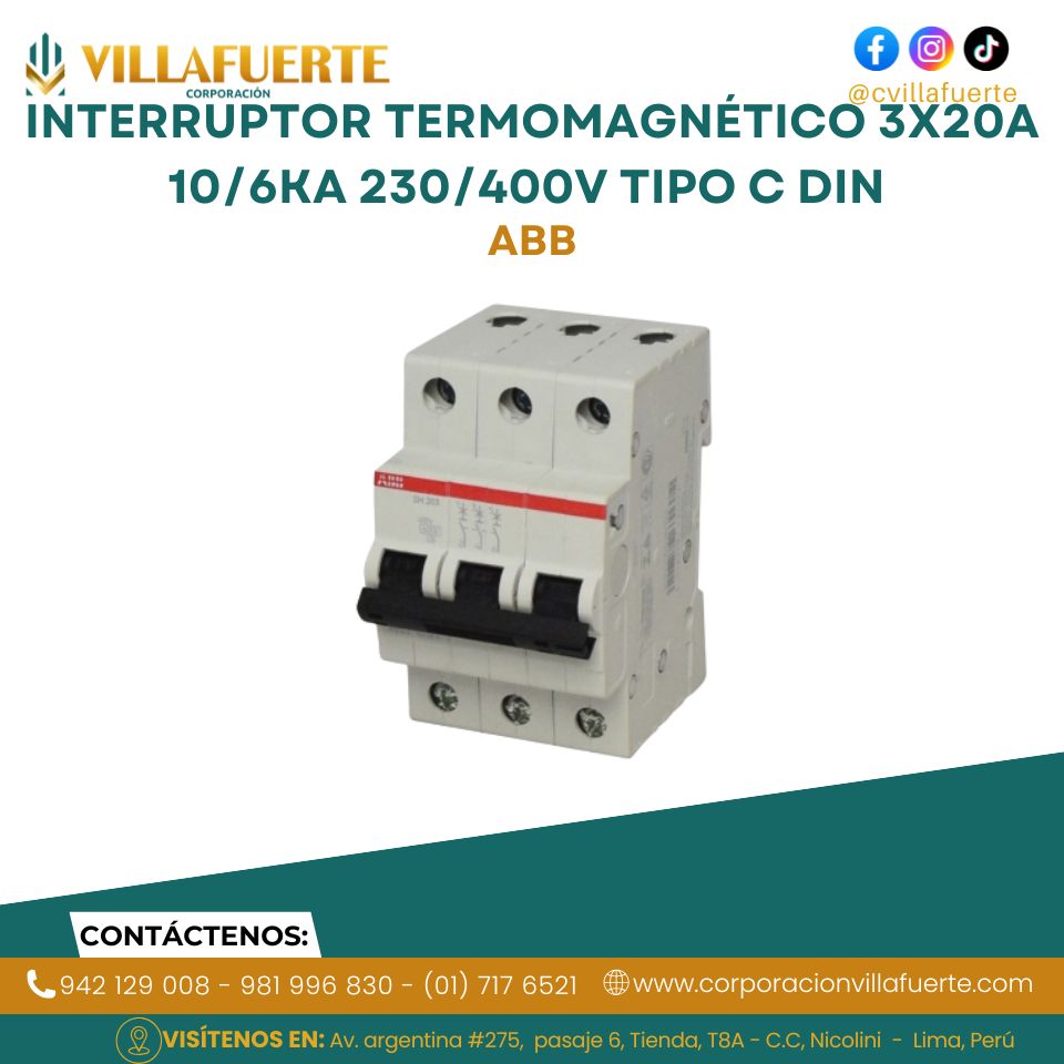 Interruptor termomagnético 3x20A 10/6kA 230/400V tipo C DIN ABB