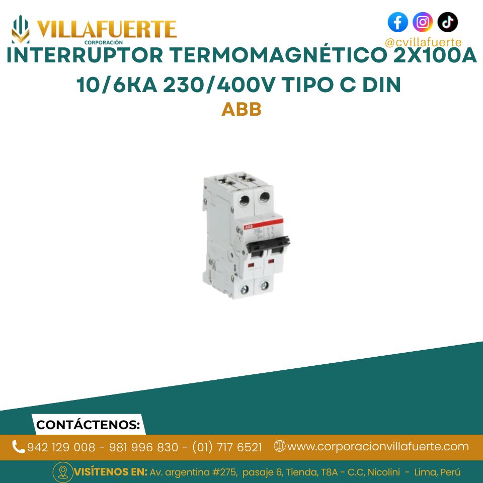 Interruptor termomagnético 2x100A 10/6kA 230/400V tipo C DIN ABB