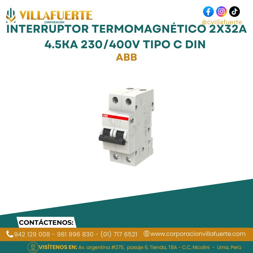 Interruptor termomagnético 2x32A 4.5KA 230/400V tipo C DIN ABB