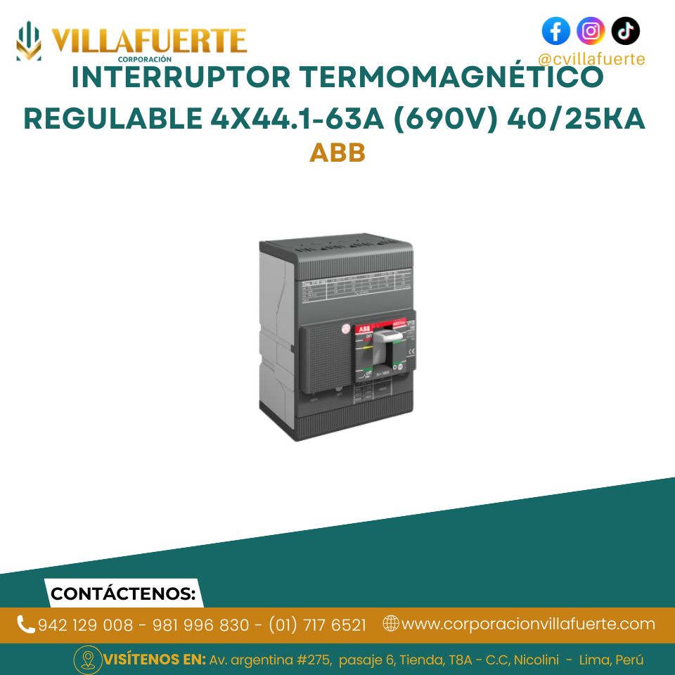 Interruptor termomagnético regulable 4×44.1-63A (690V) 40/25kA 230/440V ABB