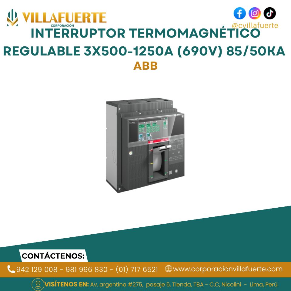 Interruptor Termomagnético Regulable 3X500-1250A (690V) 85/50KA 230/440V ABB