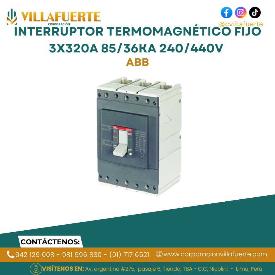 Interruptor termomagnético fijo 3x320A 85/36kA 240/440V ABB