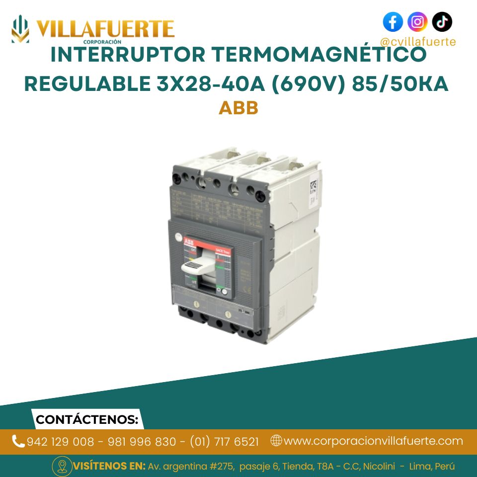 Interruptor termomagnético regulable 3×28-40A (690V) 85/50kA 220/440V ABB