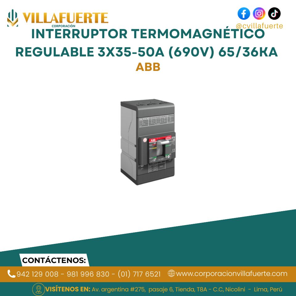 Interruptor termomagnético regulable 3×35-50A (690V) 65/36kA 230/440V ABB