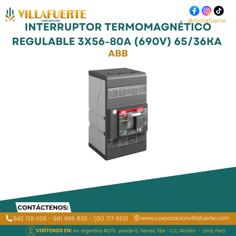 Interruptor termomagnético regulable 3×56-80A (690V) 65/36kA 230/440V ABB