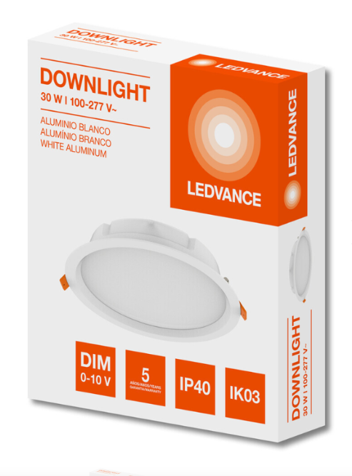 LUMINARIA LED DOWNLIGHT CIRCUL 30W 100-277V 6500K IP40 EMPOT 3400LM DIM LEDVANCE, Luminaria LED de uso exterior con opción de sensor y fotosensor.