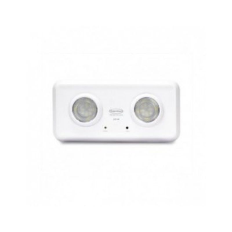LUMINARIA EMERGENCIA LED 4.2W 120-240VAC 400LM 6H IP20 SEGURIMAX. Esta luminaria de 400 lúmenes con faros empotrados utiliza tecnología LED para ofrecer iluminación de emergencia. Se emplea en recintos internos y resulta ideal para oficinas, hoteles, restaurantes, centros comerciales, residencias y muchos otros espacios.