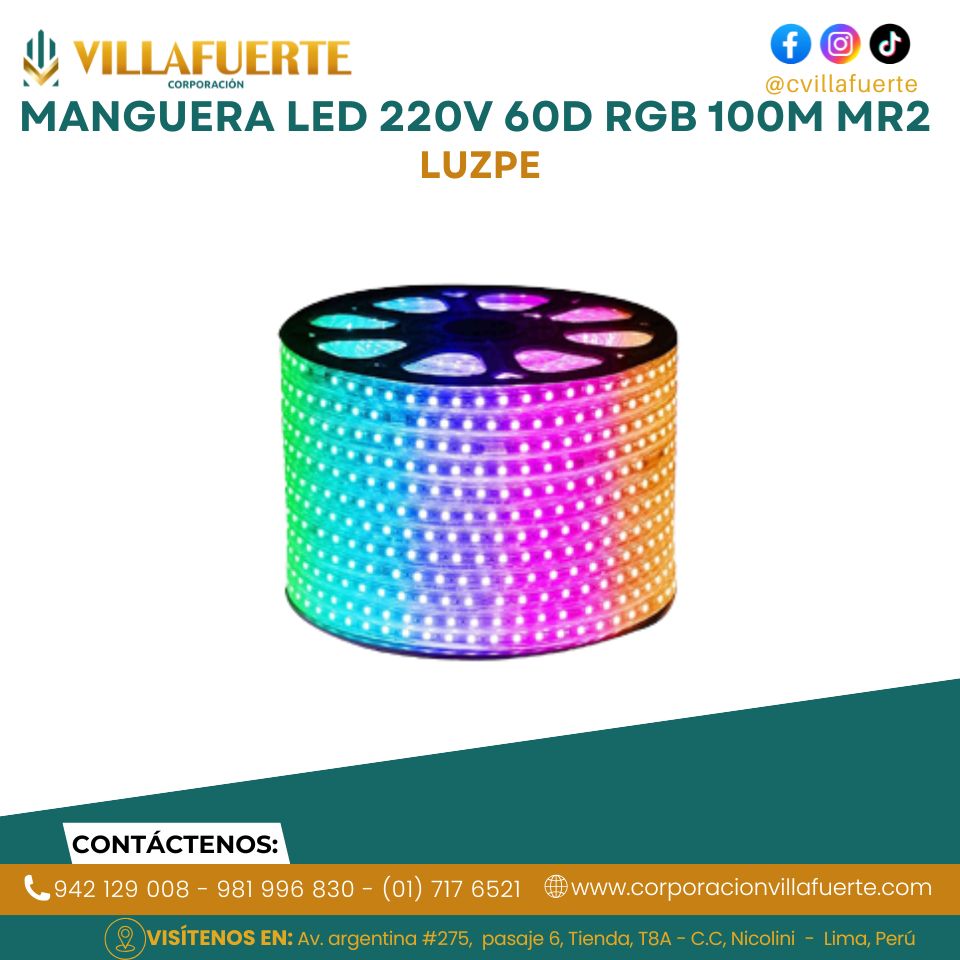 MANGUERA LED 220V 60D RGB 100M MR2 LUZPE