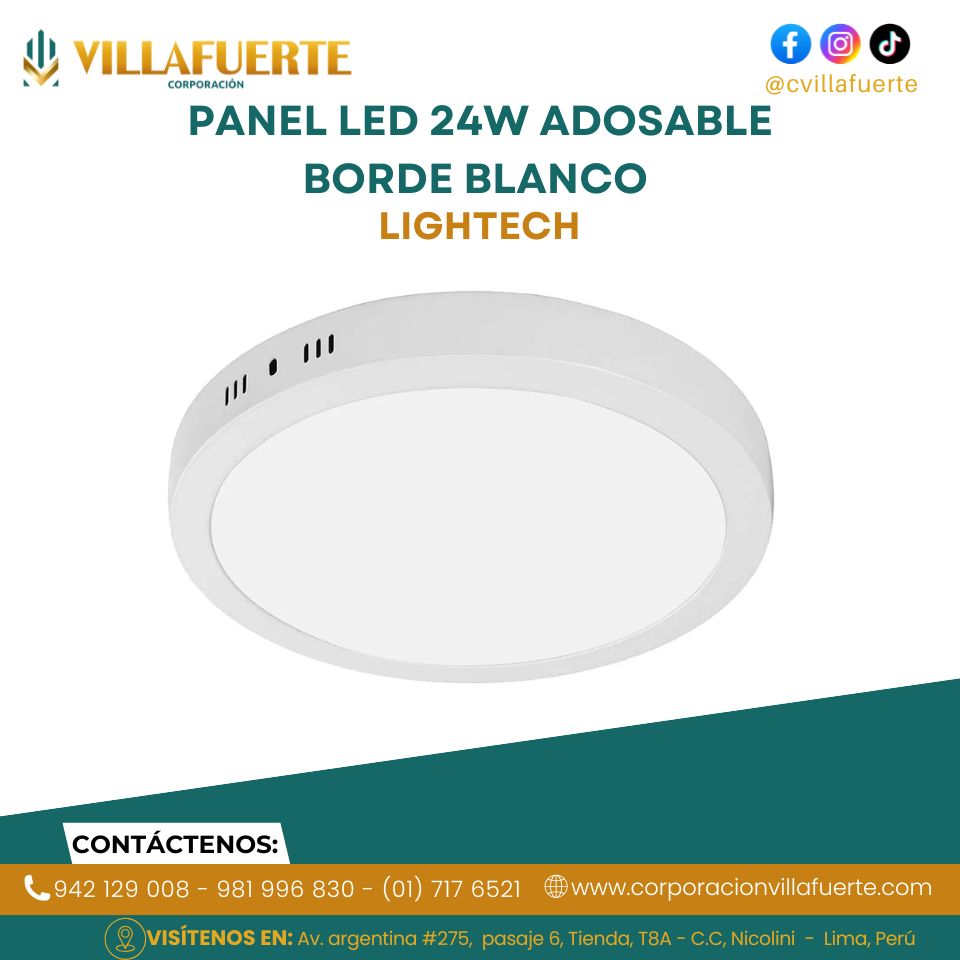 DOWNLIGHT LED 24W (3 TONOS DE LUZ EN 1) ADOSABLE BORDE BLANCO LIGHTECH, Downlight LED 24W con 2 Tipos de Instalación: Empotrada o Adosada, el Downlight LED de 24W ofrece versatilidad con opciones de instalación empotrada o adosada. Incorpora un switch interno para seleccionar entre tres tonalidades de luz: 3000K (luz cálida), 4000K (luz neutra) y 6000K (luz fría). Este downlight presenta un diseño moderno, ligero y práctico, ideal para una instalación sencilla.