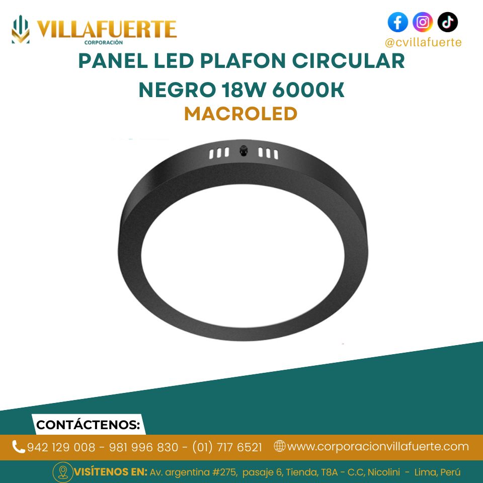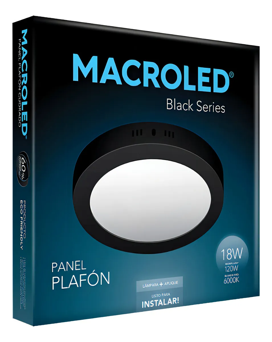 PANEL LED PLAFON NEGRO 18W 6000K AC85-265V 25,000HS CIRCADOS MACROLED, Panel plafón redondo negro 18W, 25.000 horas de vida útil, 2 años de garantía. Sin parpadeos – Ecológico – Ahorro Energético – Baja emisión de calor – Distribución de luz uniforme.