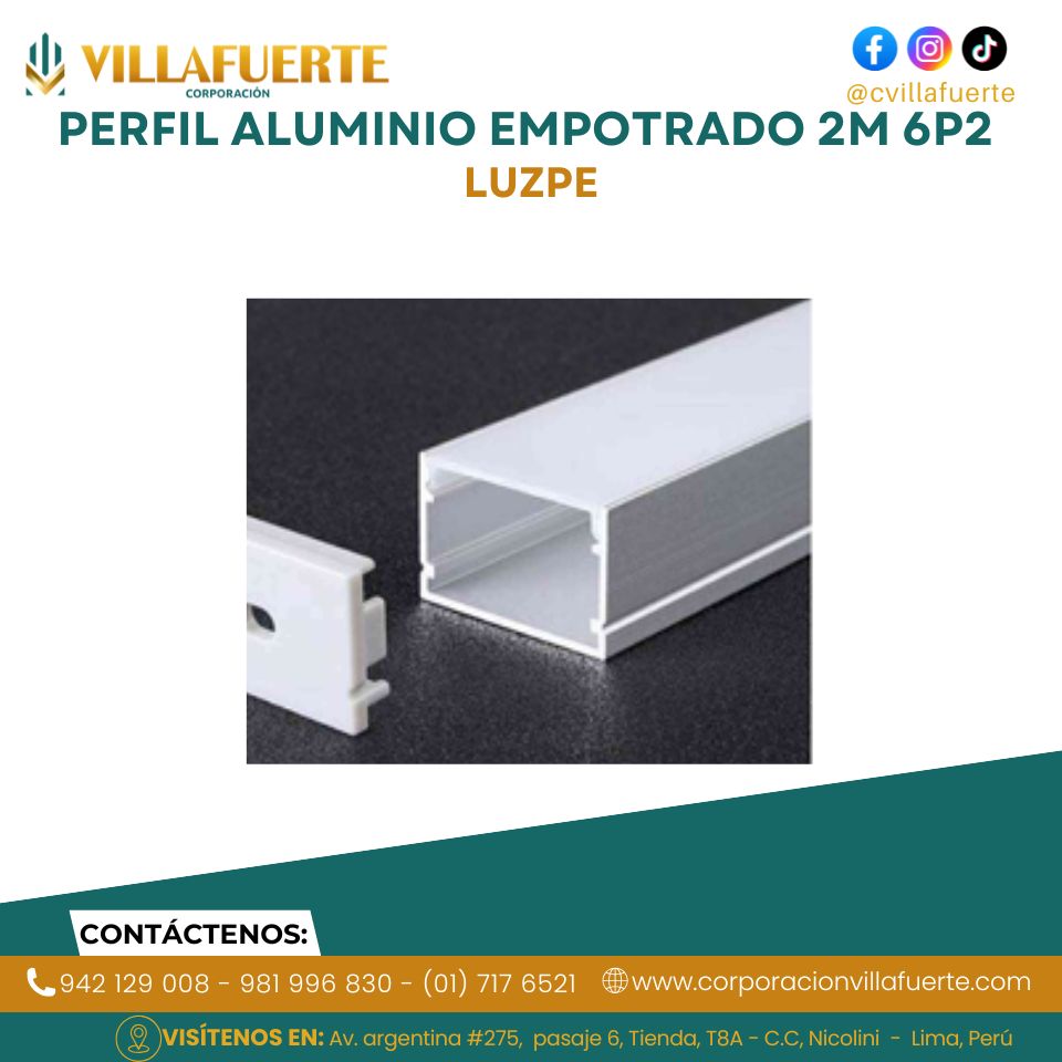 PERFIL ALUMINIO EMPOTRADO 2M 6P2 LUZPE