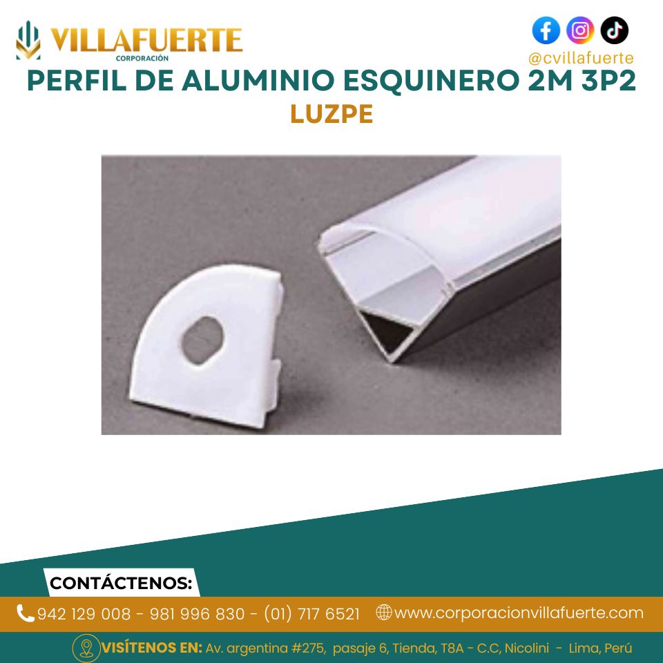 PERFIL DE ALUMINIO ESQUINERO 2M 3P2 LUZPE