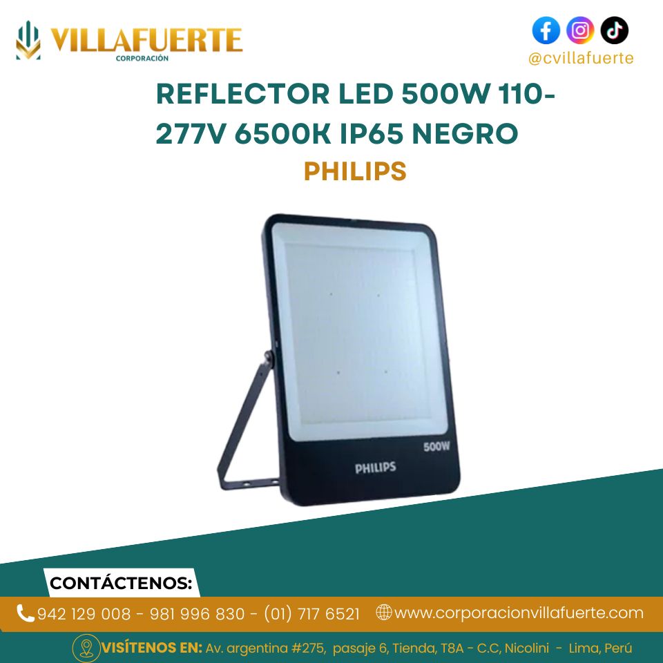 El Reflector LED Philips de 500W ofrece una iluminación potente, uniforme y altamente eficiente.