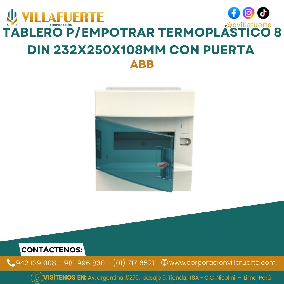 Tablero p/empotrar de termoplástico 8 DIN 232x250x108mm con puerta ABB