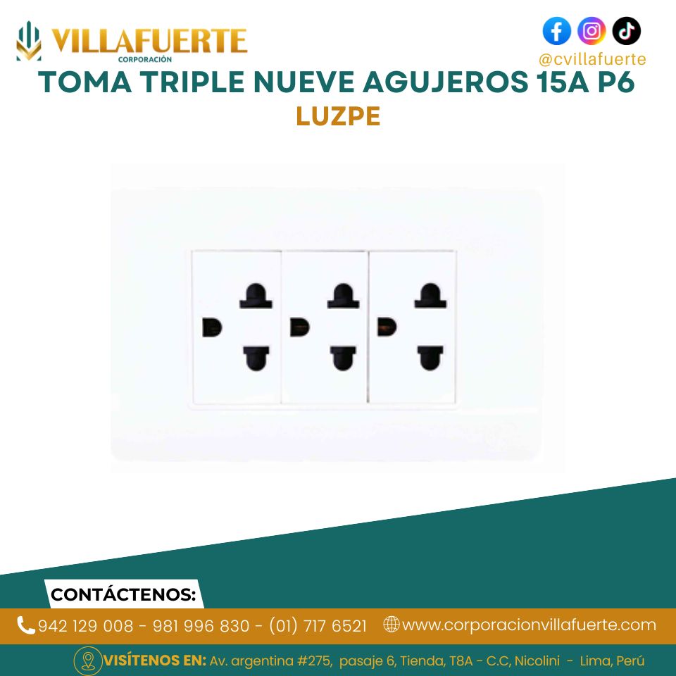 TOMA TRIPLE NUEVE AGUJEROS 15A P6 LUZPE
