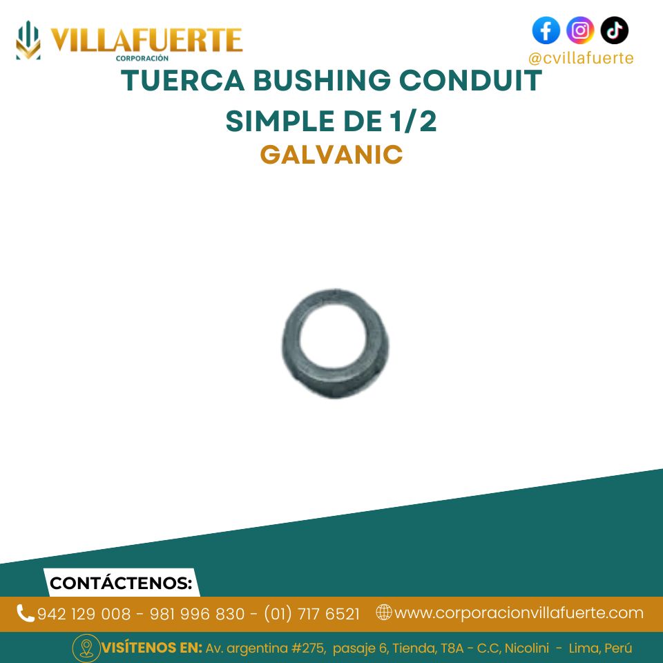 La Tuerca Bushing Conduit Simple de 1/2″ está diseñada para proteger los conductores eléctricos al pasar a través de cajas metálicas y tuberías conduit, evitando daños por bordes afilados. Fabricada con material resistente y duradero, proporciona un ajuste firme y seguro que mejora la seguridad de la instalación. Su diseño permite una instalación rápida y precisa, contribuyendo a un acabado profesional y a la protección prolongada del cableado en aplicaciones residenciales, comerciales e industriales.