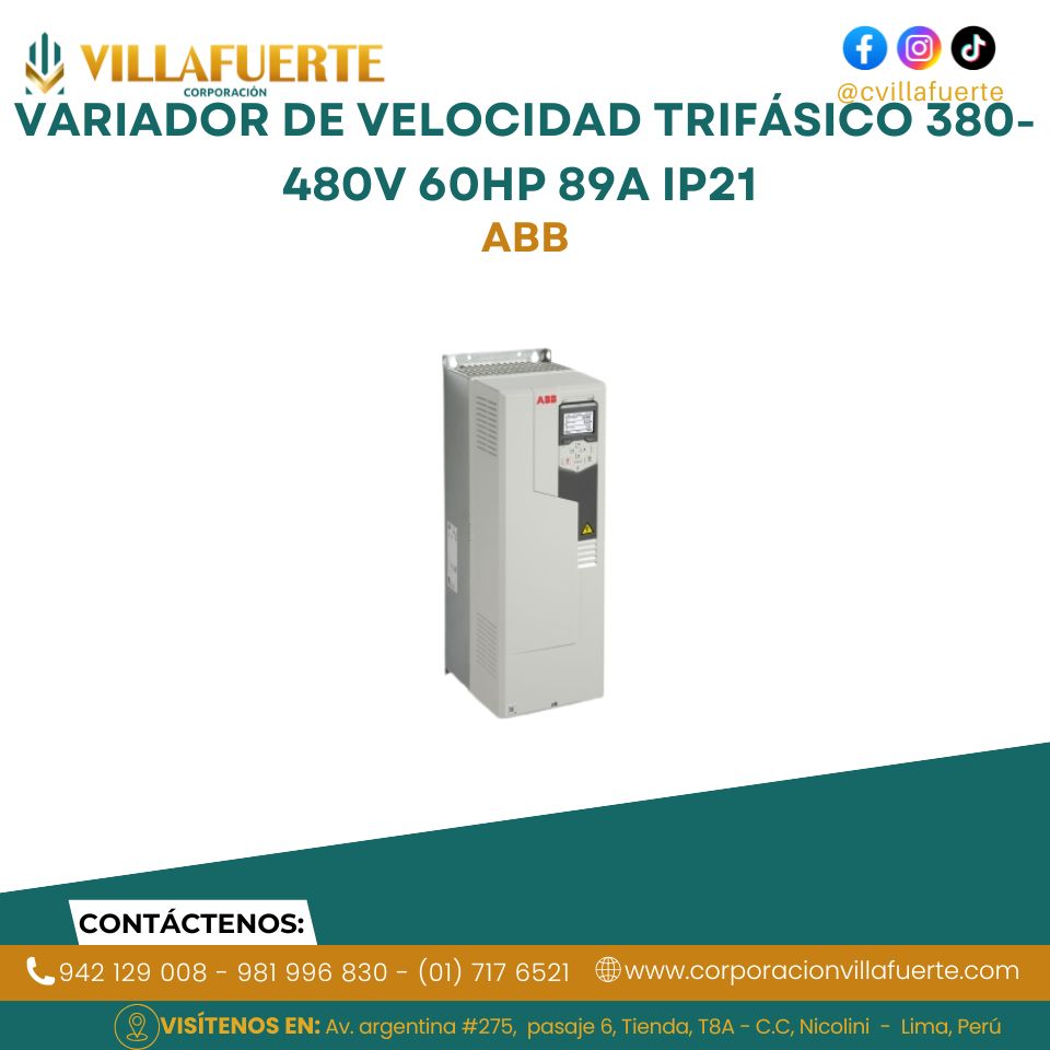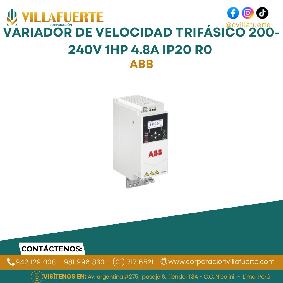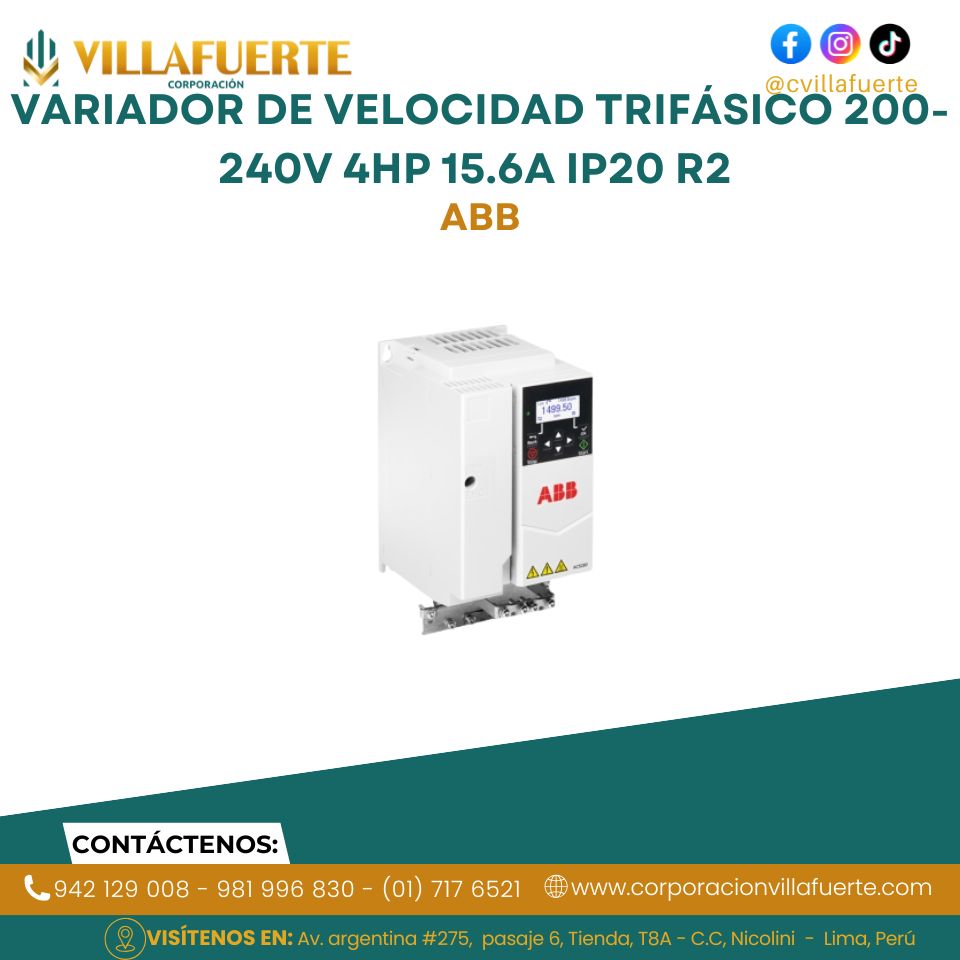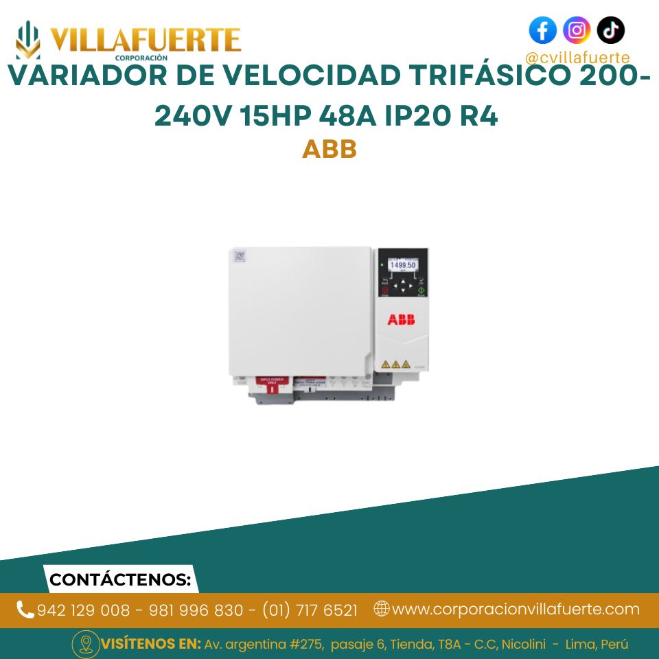 Variador de velocidad trifásico 380-480V 20HP 32A IP21 R3 ABB