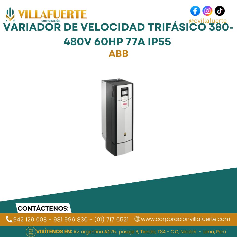 Variador de velocidad trifásico 380-480V 60HP 77A IP55 ABB