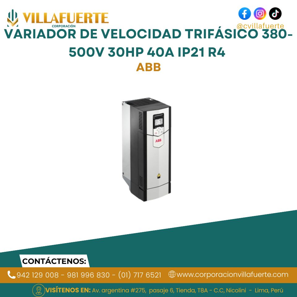 Variador de velocidad trifásico 380-500V 30HP 40A IP21 R4 ABB